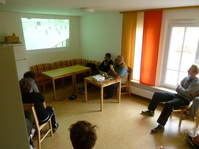Ohne die Holtz-Brüder(Pflichtspiele in SWE) aber dafür mit 3 Akteuren vom UHC Sparkasse (S.Bernieck,J.Hoffmann,T.Böttcher) lief, spielte und analysierte sich das Team bis in die sonntäglichen Mittagstunden. Es war der Situation angemesen eine sehr konzentrierte Atmosphäre, garniert und pointiert im Schwyzerdütsch Dialekt.